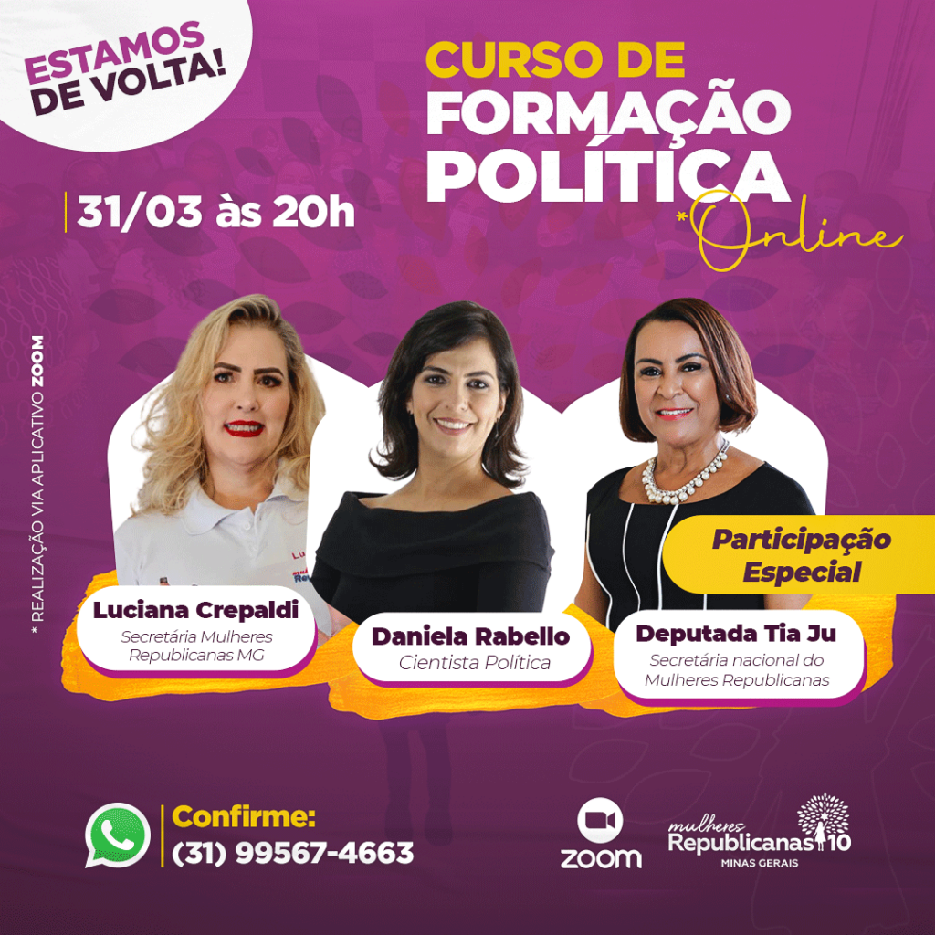 30 de março de 2021 30 de março de 2021II CURSO DE FORMAÇÃO POLÍTICA PARA MULHERESNo próximo dia 31 de março, quarta, às 20 horas, o MULHERES REPUBLICANAS Minas vai promover a continuidade do II […]